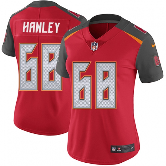 Home>NFL>Tampa Bay Buccaneers>Joe Hawley>Women's Nike Tampa Bay Buccaneers #68 Joe Hawley Red Team Color Vapor Untouchable Limited Player NFL Jersey