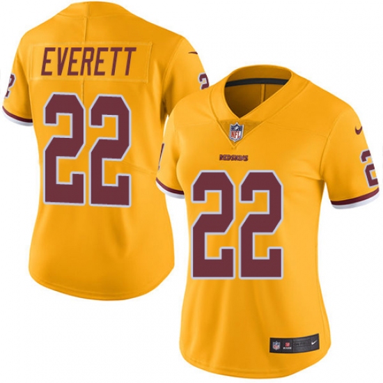 Home>NFL>Washington Redskins>Deshazor Everett>Women's Nike Washington Redskins #22 Deshazor Everett Limited Gold Rush Vapor Untouchable NFL Jersey