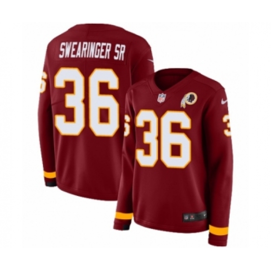 Women's Nike Washington Redskins #36 D.J. Swearinger Limited Burgundy Therma Long Sleeve NFL Jersey