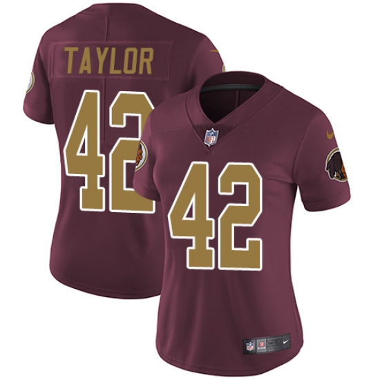 Women's Nike Washington Redskins #42 Charley Taylor Elite Burgundy Red/Gold Number Alternate 80TH Anniversary NFL Jersey
