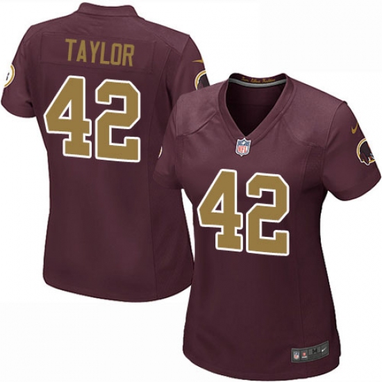 Women's Nike Washington Redskins #42 Charley Taylor Game Burgundy Red/Gold Number Alternate 80TH Anniversary NFL Jersey