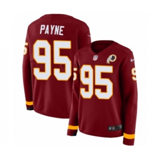 >Women's Nike Washington Redskins #95 Da'Ron Payne Limited Burgundy Therma Long Sleeve NFL Jersey