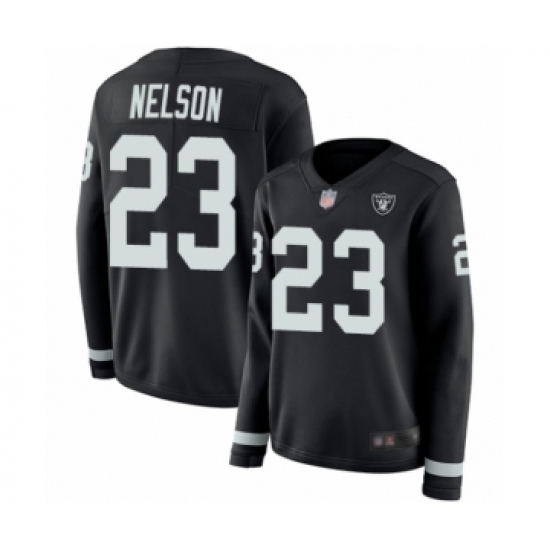 Women's Oakland Raiders #23 Nick Nelson Limited Black Therma Long Sleeve Football Jersey