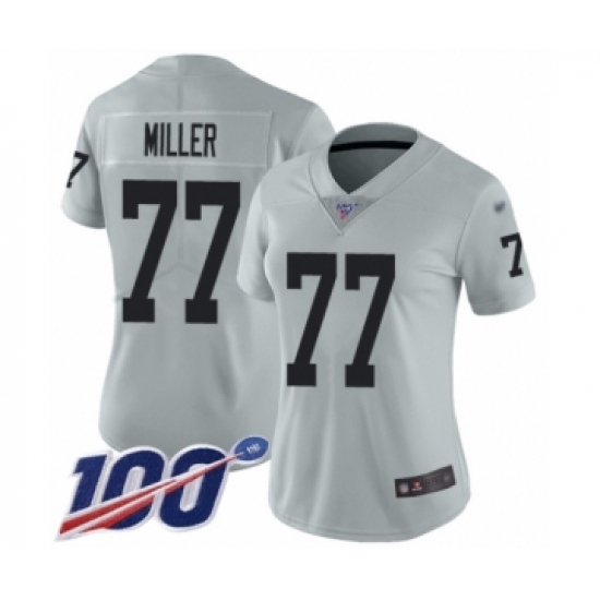 Women's Oakland Raiders #77 Kolton Miller Limited Silver Inverted Legend 100th Season Football Jersey