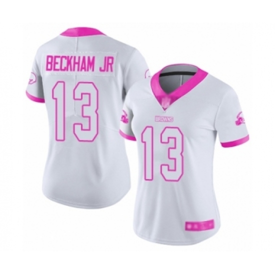 >Women's Odell Beckham Jr. Limited White Pink Nike Jersey NFL Cleveland Browns #13 Rush Fashion