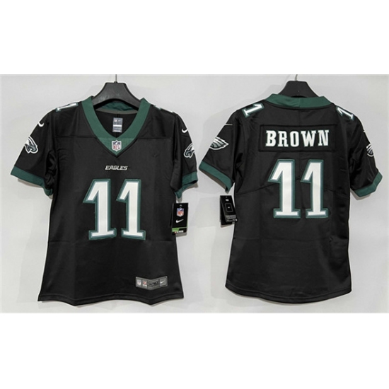 >Women's Philadelphia Eagles #11 A. J. Brown Black New Vapor Untouchable Limited Football Stitched Jersey(Run Small)