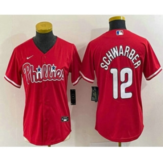 Women's Philadelphia Phillies #12 Kyle Schwarber Red Stitched Cool Base Nike Jersey