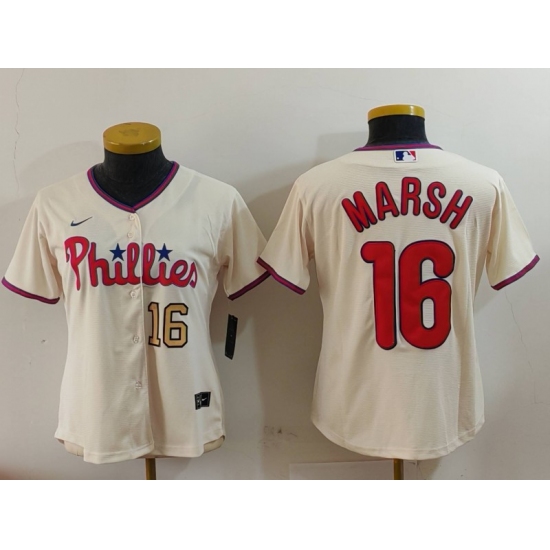Women's Philadelphia Phillies #16 Brandon Marsh Cream Stitched Cool Base Jerseys