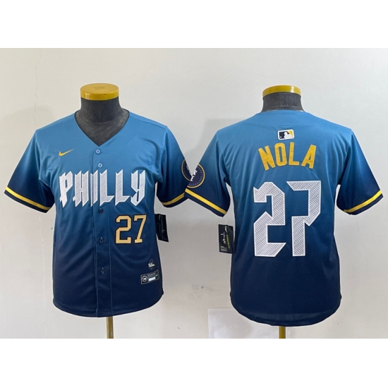 Youth Philadelphia Phillies #27 Aaron Nola Blue 2024 City Connect Limited Stitched Jersey