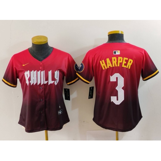 Women's Philadelphia Phillies #3 Bryce Harper Red 2024 City Connect Limited Jersey