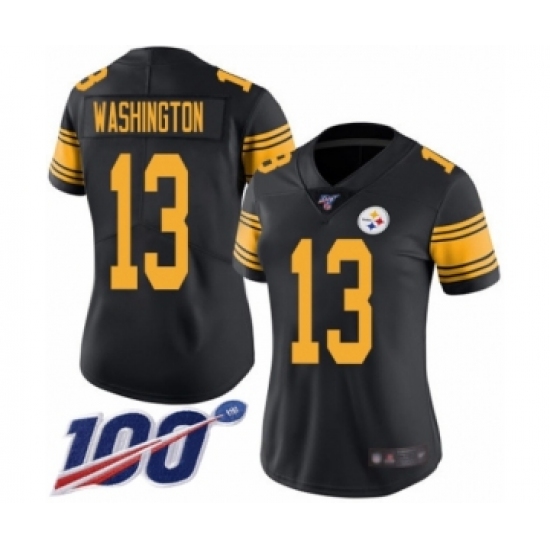 >Women's Pittsburgh Steelers #13 James Washington Limited Black Rush Vapor Untouchable 100th Season Football Jersey