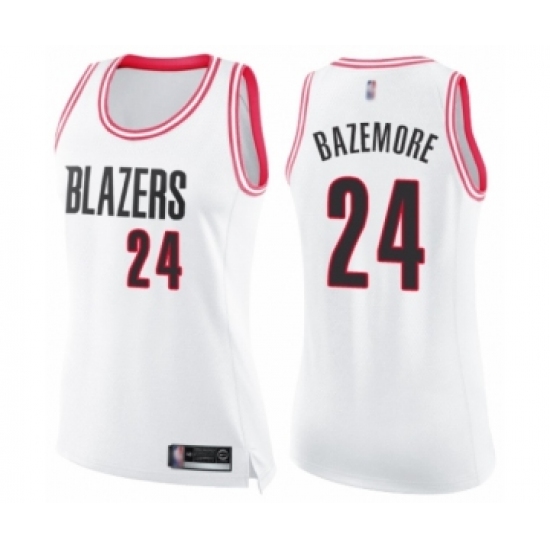 Women's Portland Trail Blazers #24 Kent Bazemore Swingman White Pink Fashion Basketball Jersey