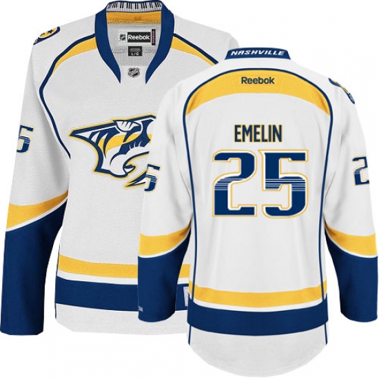 Home>NHL>Nashville Predators>Alexei Emelin>Women's Reebok Nashville Predators #25 Alexei Emelin Authentic White Away NHL Jersey