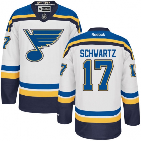 Home>NHL>St. Louis Blues>Jaden Schwartz>Women's Reebok St. Louis Blues #17 Jaden Schwartz Authentic White Away NHL Jersey