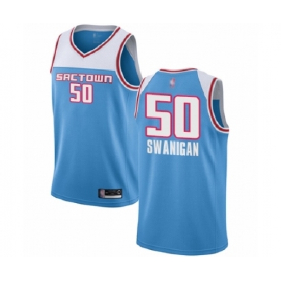 >Women's Sacramento Kings #50 Caleb Swanigan Swingman Blue Basketball Jersey - 2018-19 City Edition