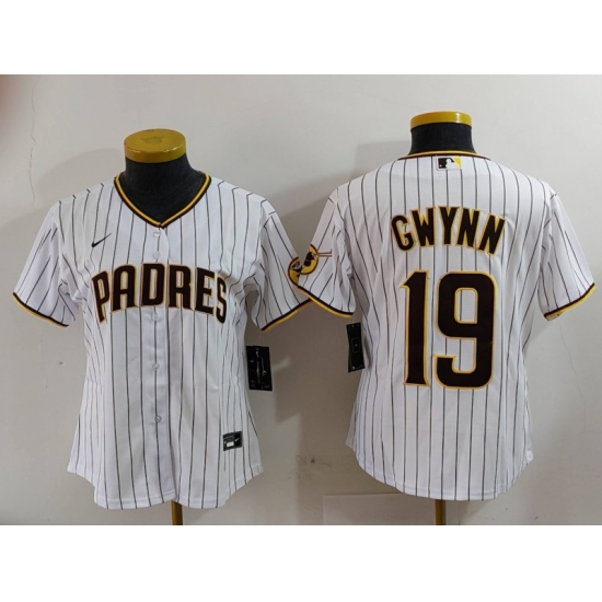 Women's San Diego Padres #19 Tony Gwynn White Team Logo Stitched Cool Base Nike Jersey