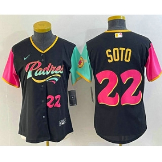 >Women's San Diego Padres #22 Juan Soto Number Black 2022 City Connect Cool Base Stitched Jersey
