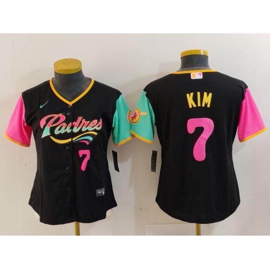 Women's San Diego Padres #7 Ha Seong Kim Black Player Number Fashion Baseball Jersey