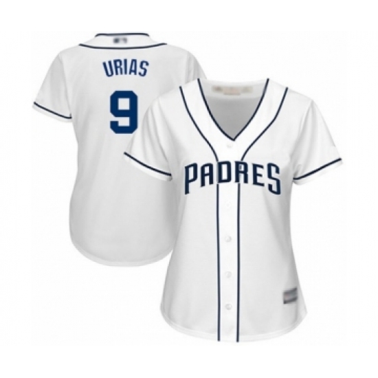 Women's San Diego Padres #9 Luis Urias Authentic White Home Cool Base Baseball Player Jersey