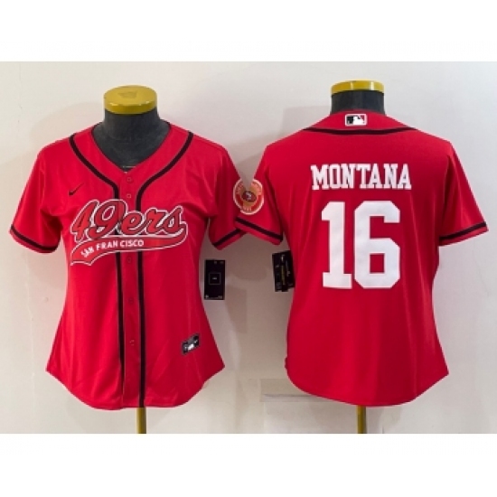 Women's San Francisco 49ers #16 Joe Montana Red With Patch Cool Base Stitched Baseball Jersey