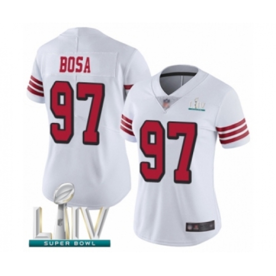 >Women's San Francisco 49ers #97 Nick Bosa Limited White Rush Vapor Untouchable Super Bowl LIV Bound Football Jersey