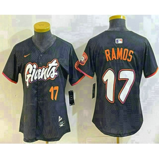 >Women's San Francisco Giants #17 Heliot Ramos Number Black 2025 City Connect Limited Stitched Jersey