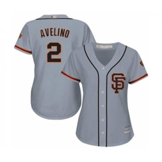 Women's San Francisco Giants #2 Abiatal Avelino Authentic Grey Road 2 Cool Base Baseball Player Jersey