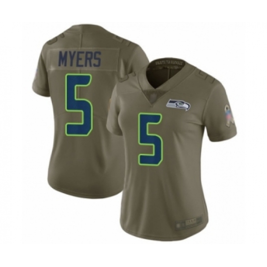 >Women's Seattle Seahawks #5 Jason Myers Limited Olive 2017 Salute to Service Football Jersey