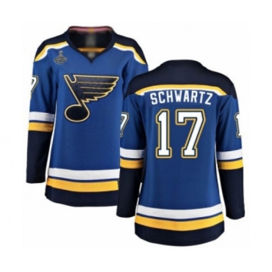 >Women's St. Louis Blues #17 Jaden Schwartz Fanatics Branded Royal Blue Home Breakaway 2019 Stanley Cup Champions Hockey Jersey
