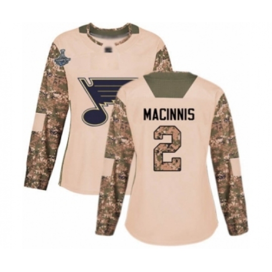 Women's St. Louis Blues #2 Al Macinnis Authentic Camo Veterans Day Practice 2019 Stanley Cup Champions Hockey Jersey