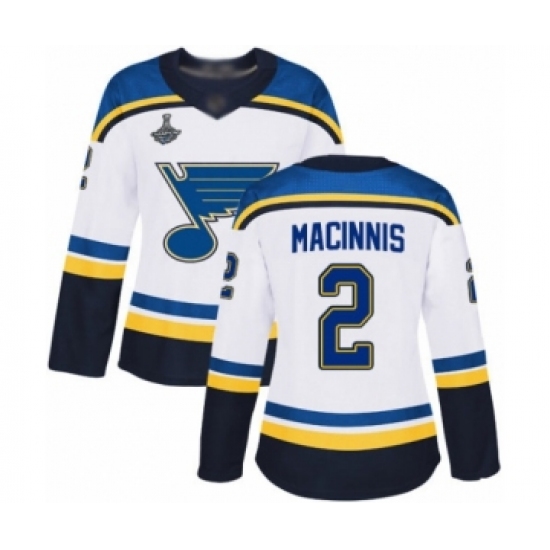 Women's St. Louis Blues #2 Al Macinnis Authentic White Away 2019 Stanley Cup Champions Hockey Jersey