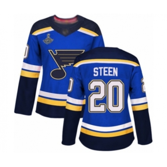 Women's St. Louis Blues #20 Alexander Steen Authentic Royal Blue Home 2019 Stanley Cup Champions Hockey Jersey