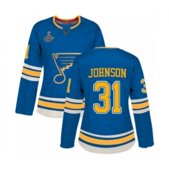 Women's St. Louis Blues #31 Chad Johnson Authentic Navy Blue Alternate 2019 Stanley Cup Champions Hockey Jersey
