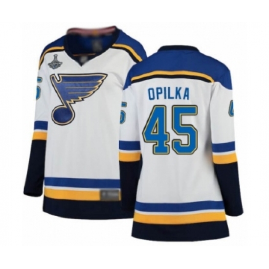 Women's St. Louis Blues #45 Luke Opilka Fanatics Branded White Away Breakaway 2019 Stanley Cup Champions Hockey Jersey
