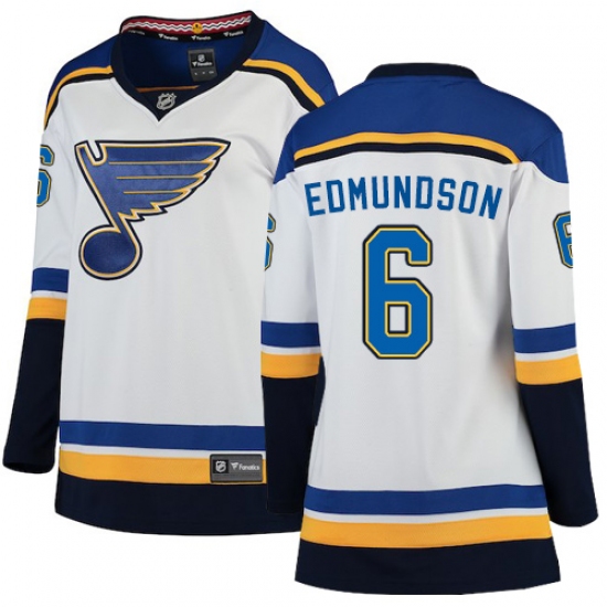 >Women's St. Louis Blues #6 Joel Edmundson Fanatics Branded White Away Breakaway NHL Jersey