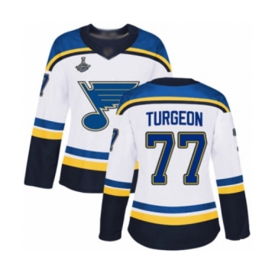 Women's St. Louis Blues #77 Pierre Turgeon Authentic White Away 2019 Stanley Cup Champions Hockey Jersey