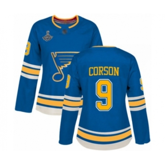 Women's St. Louis Blues #9 Shayne Corson Authentic Navy Blue Alternate 2019 Stanley Cup Champions Hockey Jersey