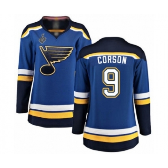 Women's St. Louis Blues #9 Shayne Corson Fanatics Branded Royal Blue Home Breakaway 2019 Stanley Cup Final Bound Hockey Jersey