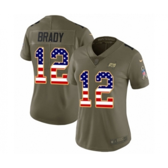 Women's Tampa Bay Buccaneers #12 Tom Brady Olive USA Flag Limited 2017 Salute To Service Jersey