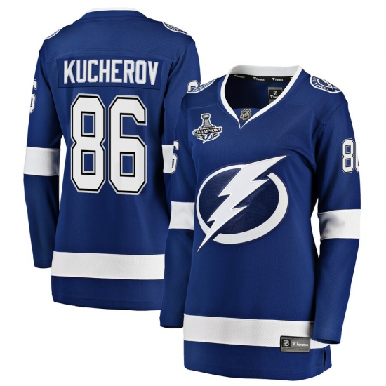 >Women's Tampa Bay Lightning #86 Nikita Kucherov Fanatics Branded Blue Home 2020 Stanley Cup Champions Breakaway Jersey