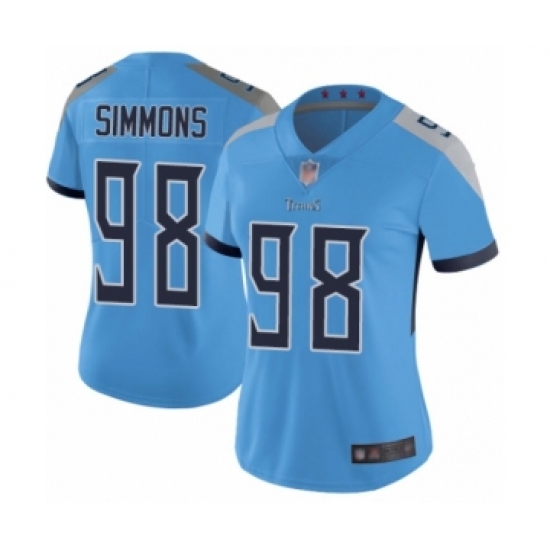 >Women's Tennessee Titans #98 Jeffery Simmons Light Blue Alternate Vapor Untouchable Limited Player Football Jersey