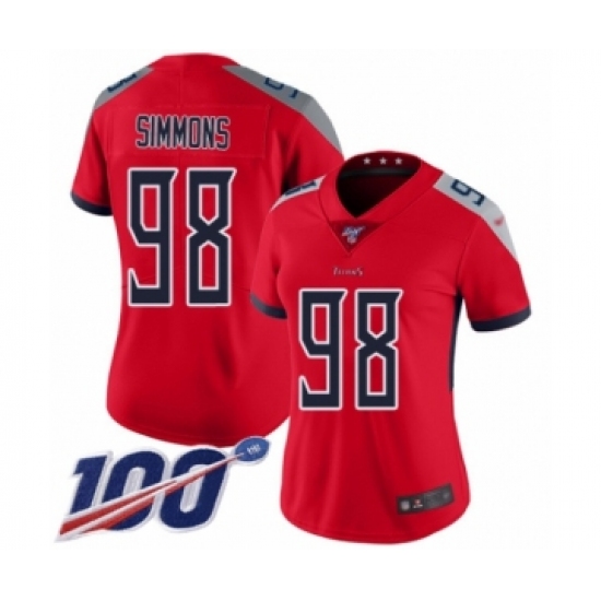Women's Tennessee Titans #98 Jeffery Simmons Limited Red Inverted Legend 100th Season Football Jersey