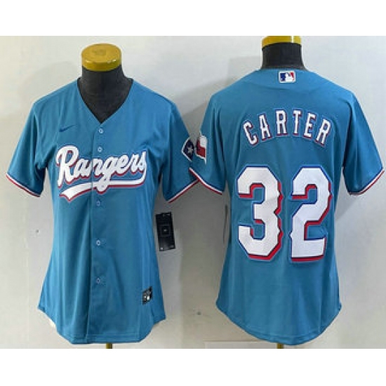 >Women's Texas Rangers #32 Evan Carter Light Blue Team Logo Cool Base Jersey