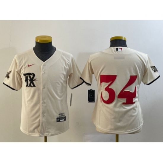 >Women's Texas Rangers #34 Nolan Ryan Cream 2023 City Connect Stitched Baseball Jersey