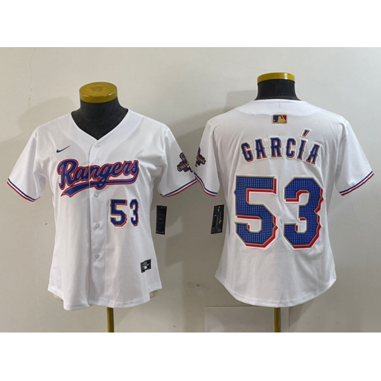 Women's Texas Rangers #53 Adolis Garcia Number White 2024 Gold Collection Limited Cool Base Jerseys