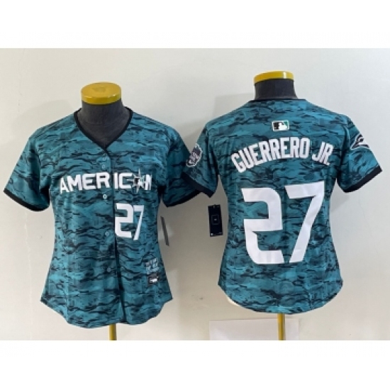 >Women's Toronto Blue Jays #27 Vladimir Guerrero Jr Number Teal 2023 All Star Cool Base Stitched Jersey