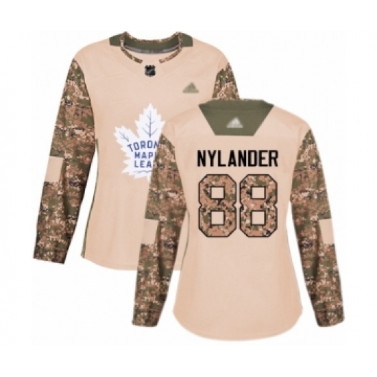 >Women's Toronto Maple Leafs #88 William Nylander Authentic Camo Veterans Day Practice Hockey Jersey