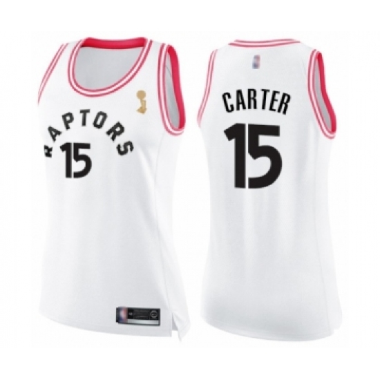 Women's Toronto Raptors #15 Vince Carter Swingman White Pink Fashion 2019 Basketball Finals Champions Jersey