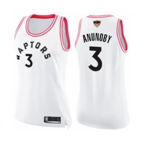 >Women's Toronto Raptors #3 OG Anunoby Swingman White Pink Fashion 2019 Basketball Finals Bound Jersey