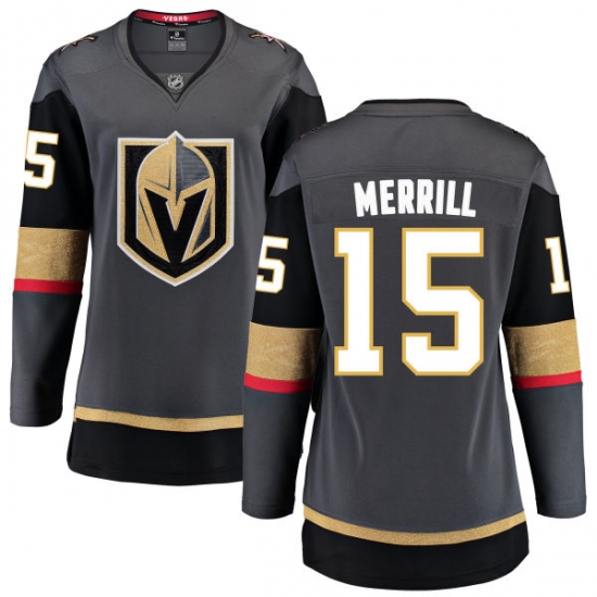 Home>NHL>Vegas Golden Knights>Jon Merrill>Women's Vegas Golden Knights #15 Jon Merrill Authentic Black Home Fanatics Branded Breakaway NHL Jersey